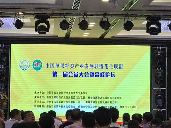7月5日,由中國食品工業(yè)協(xié)會堅果炒貨委員會主辦,中國堅果籽類產(chǎn)業(yè)發(fā)展聯(lián)盟花生聯(lián)盟以及煙臺茂源食品機械制造有限公司共同承辦的“中國堅果籽類產(chǎn)業(yè)發(fā)展聯(lián)盟花生聯(lián)盟頭一屆會員大會暨高峰論壇”主題活動在山東省棲霞市煙臺寶華開元名都大酒店順利召開。