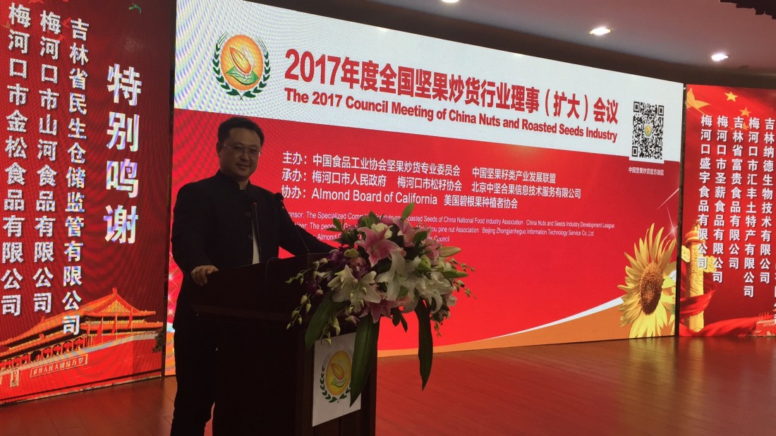 由中國食品工業(yè)協(xié)會堅(jiān)果炒貨專業(yè)委員會主辦的“2017年度全國堅(jiān)果炒貨行業(yè)理事會(擴(kuò)大)會議”,于2017年10月23日—25日在吉林梅河口市召開。出席此次會議的代表有:協(xié)會執(zhí)行會長、副會長、全體理事單位;梅河口市政府、廣西龍州縣政府、云南臨滄縣政府有關(guān)部門領(lǐng)導(dǎo)以及吉林省有關(guān)市縣的領(lǐng)導(dǎo);出席的有關(guān)部門還有國家食藥監(jiān)總局三司、吉林省食品安全質(zhì)量檢驗(yàn)檢測所,以及美國、俄羅斯、越南、巴基斯坦等國家堅(jiān)果協(xié)會、企業(yè)代表,共計(jì)500余人參加了會議。