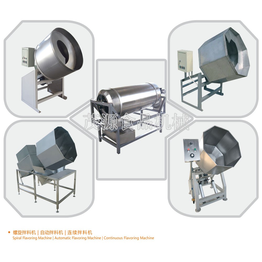 拌料機是與油炸生產(chǎn)過程中的其它設備配合使用,廣泛應用于油炸花生、蠶豆等顆粒物料與調味輔料的混合,也可應用于食品行業(yè)其他物料與添加劑的混合。該機拌料柔和、分散均勻、自動拌料、自動出料、操作方便,是適用于食品行業(yè)生產(chǎn)過程中物料混合的設備。