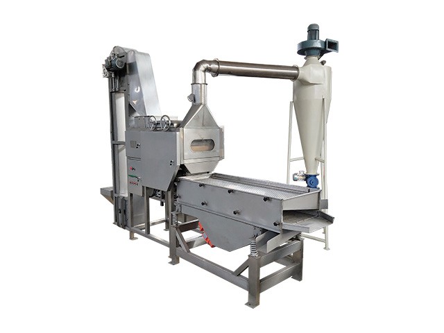 帶式半粒機組是將經(jīng)烘烤/干燥的過的花生米,進行脫皮-分選-吸皮-篩選-去芽的設(shè)備。主要應(yīng)用于花生醬、花生糖、花生奶/露、花生碎等產(chǎn)品的前期處理。